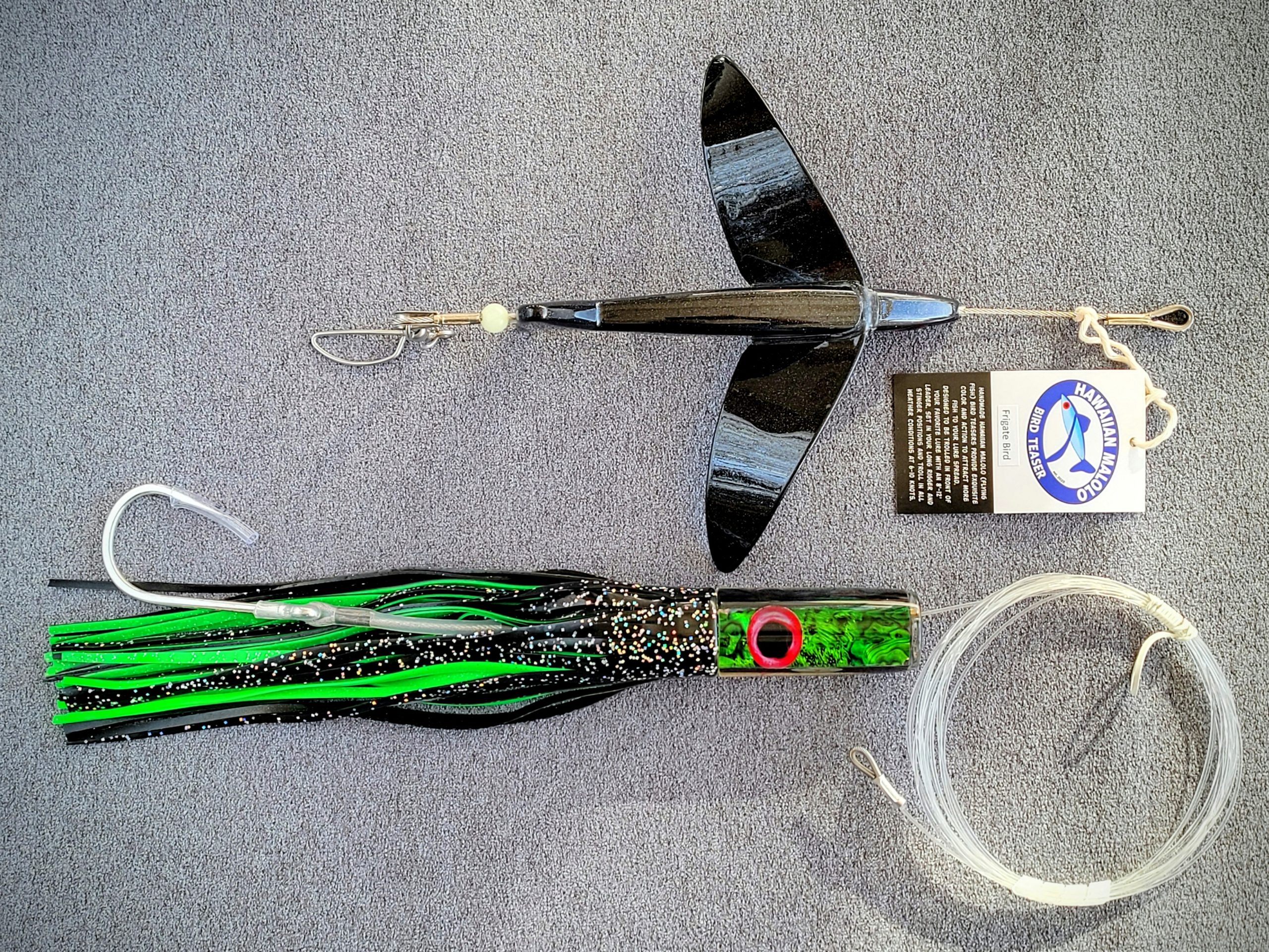 VI Z45 11 inch lure rigged with 150lb mono and 9/0 BKK KAJIKI HD stiff rig hook set.